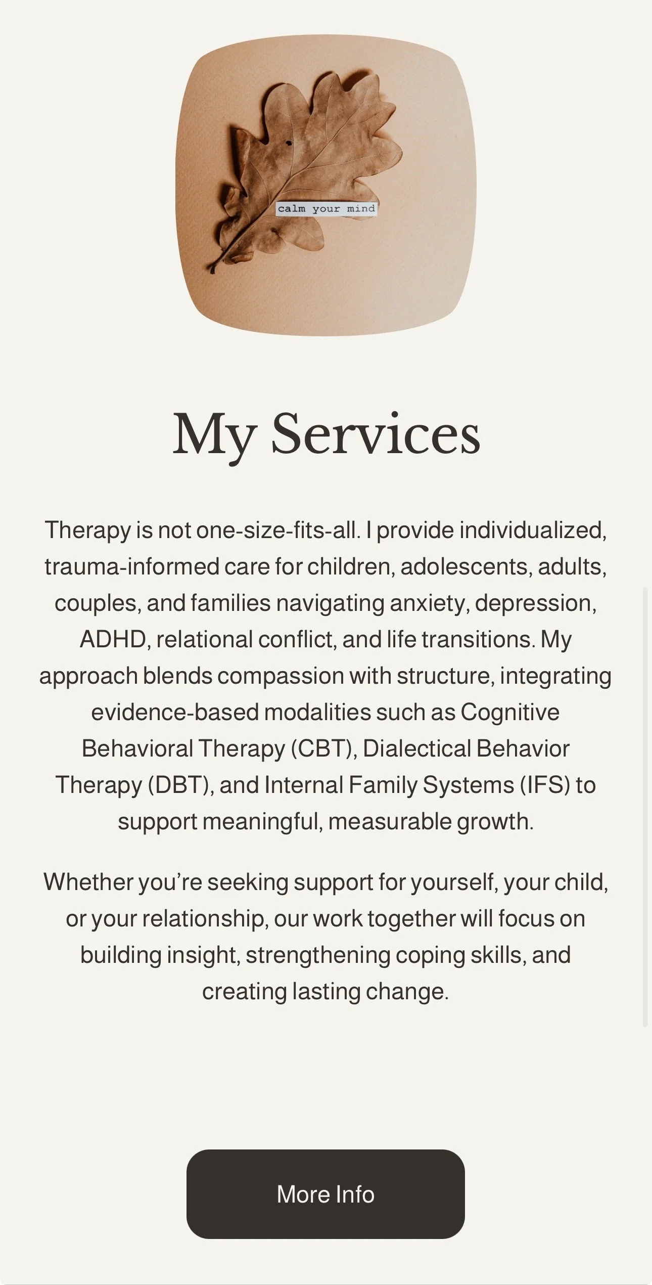 My name is Sam Bowler. I have a passion for providing great websites for mental health providers because my wife is one of you. I managed her group practice in Nashville for 5 years before moving on to focus on web design. I understand the frustration that can come from either struggling through making your own site, or trying to find someone who can fulfill your vision without charging you a ridiculous amount of money.